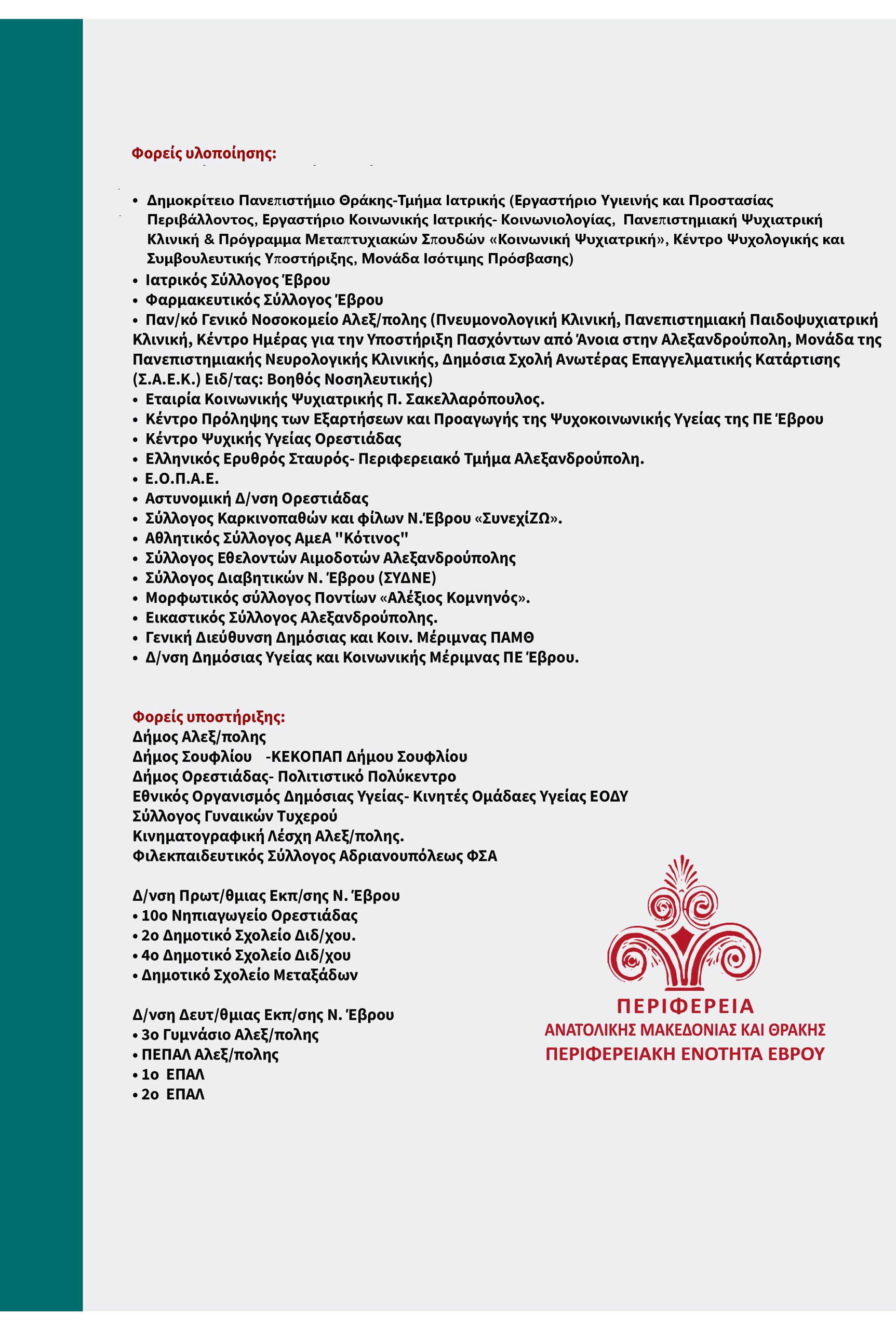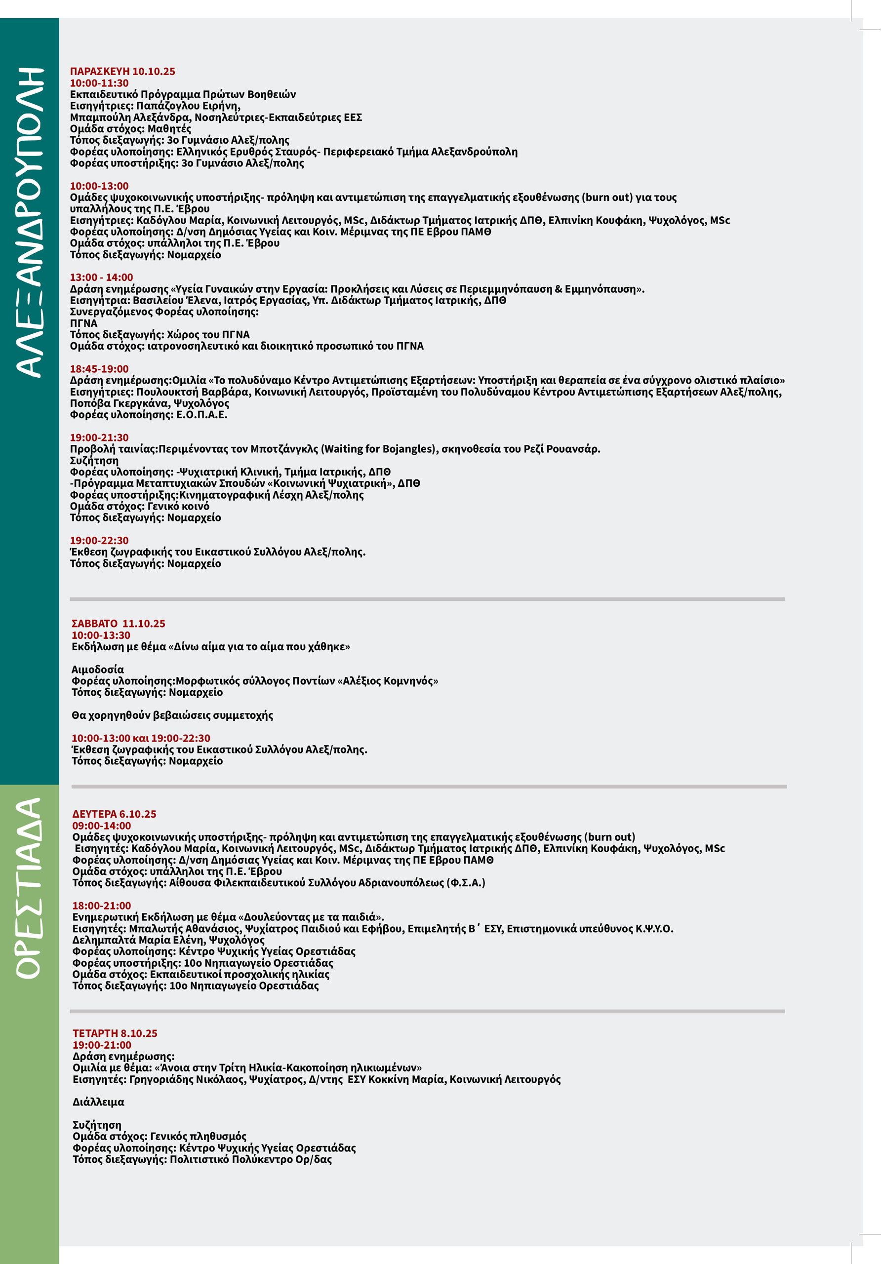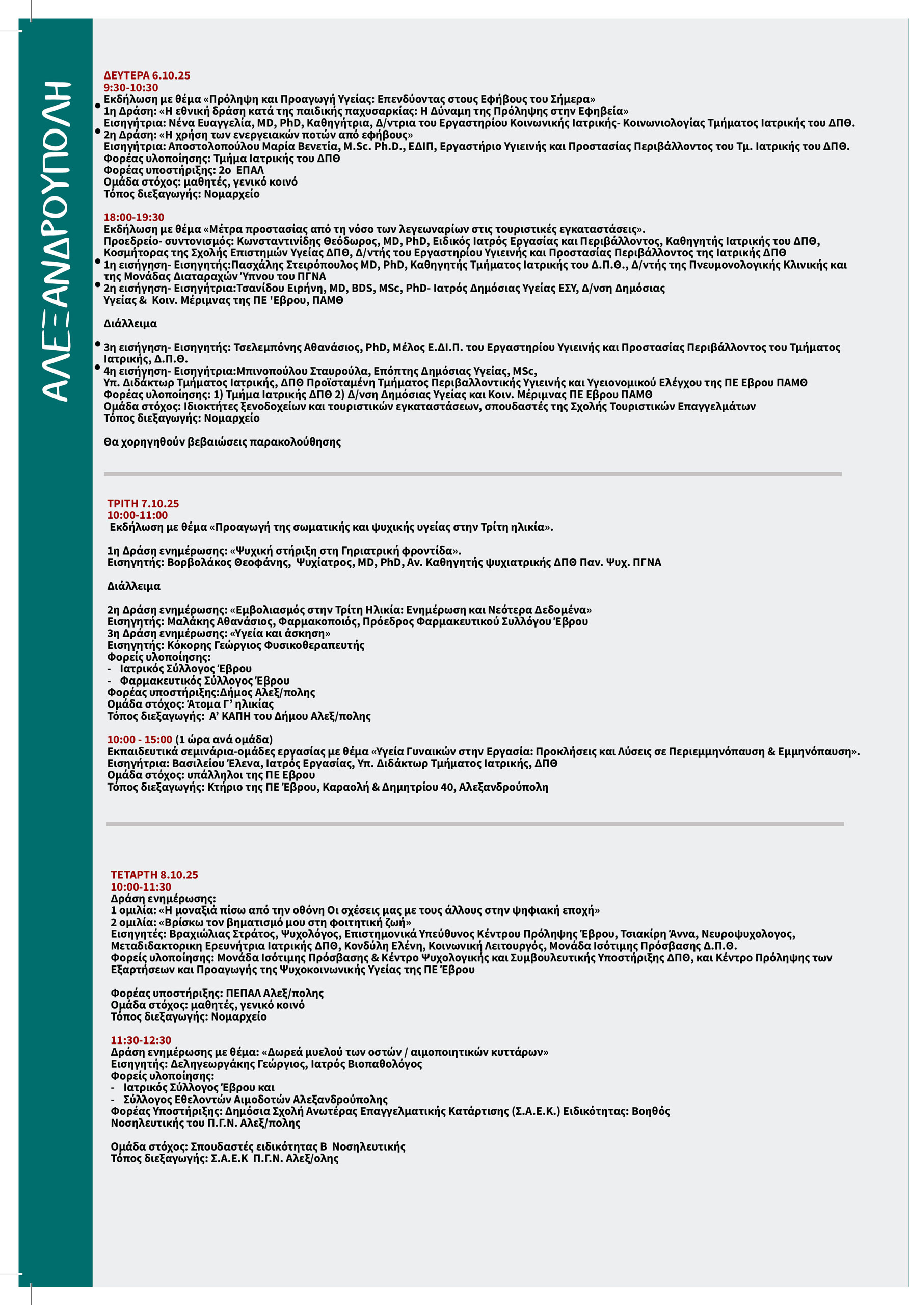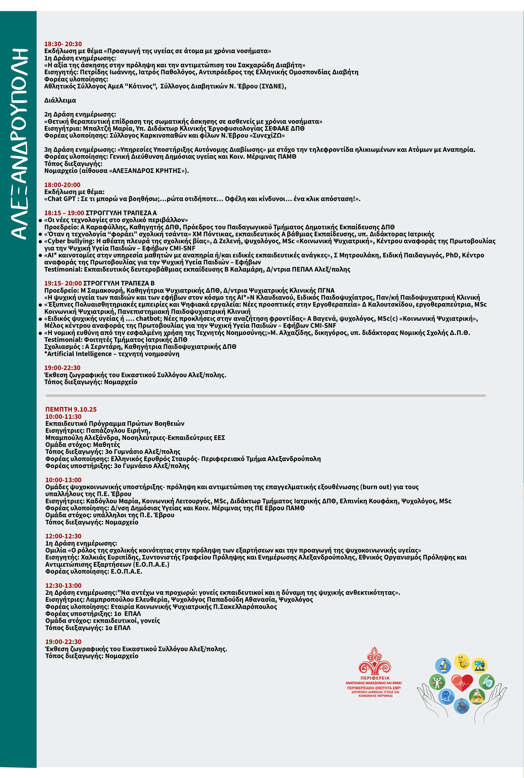 Εβδομάδα Δημόσιας και Ψυχικής Υγείας – ΠΑΜΘ 2025 -Περιφερειακή Ενότητα Έβρου